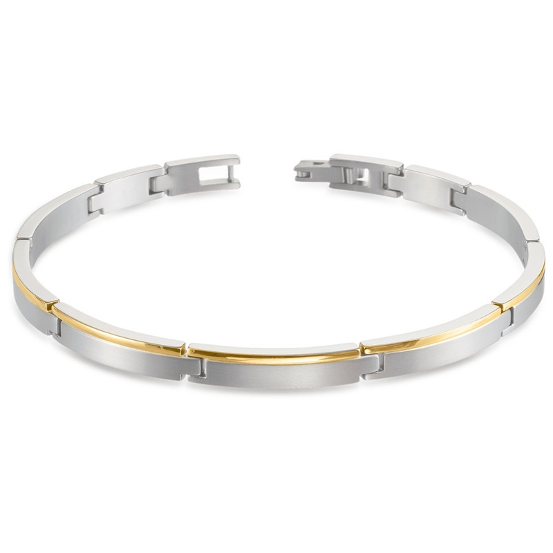 Das Boccia Armband ist ein elegantes Damen-Armband aus hochwertigen Titan. Es kombiniert eine Oberfläche mit teilweise glänzend gebgoldplattierten Elementen, die einen modernen und zugleich zeitlosen Look verleihen. Das Armband