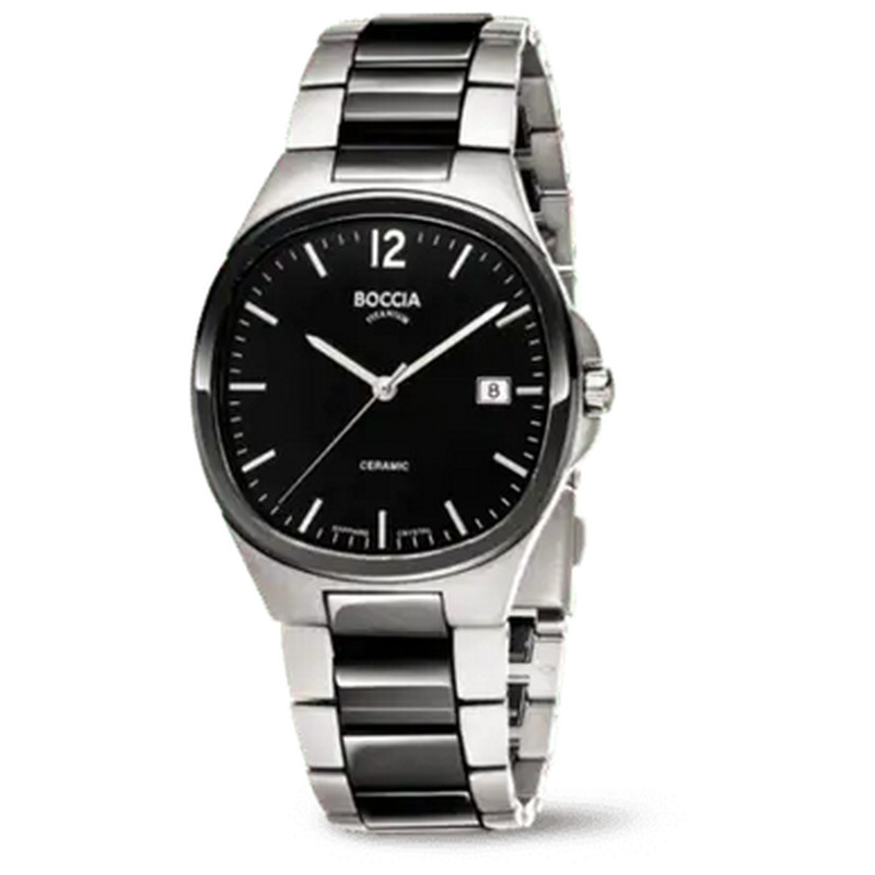 Eleganz in sportlicher Form – die Boccia Titanium Herrenuhr Ceramic 3668-01 überzeugt durch ihr harmonisches Zusammenspiel von Reintitan und Keramik. Diese Materialkombination sorgt für Leichtigkeit, Robustheit und einen markanten, modernen Look.</di