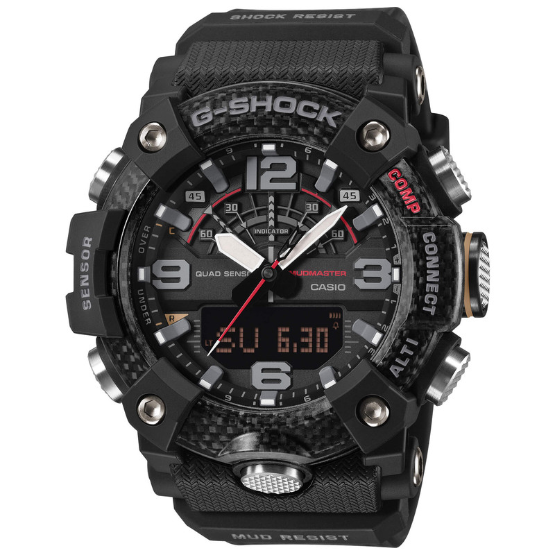 Durchmesser 55.4 × 51.3 mm Wasserdichte 20 bar / 200 m Zifferblattfarbe schwarz Indikation Index arabisch Uhrenglas Mineralglas Art des Werks Quartz/Batterie Armband Resin Armband-Material Resin Lünette mattiert