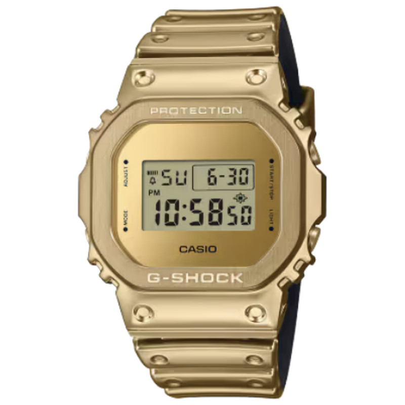 G-STEEL Kühnheit trifft auf raffinierten Glanz in monochromer Goldfarbe. Die monochrome Ästhetik verbindet eine goldfarbene Metalllünette mit einem neu entwickelten, robusten Silikonband in derselben Farbe. Die Oberfläche d
