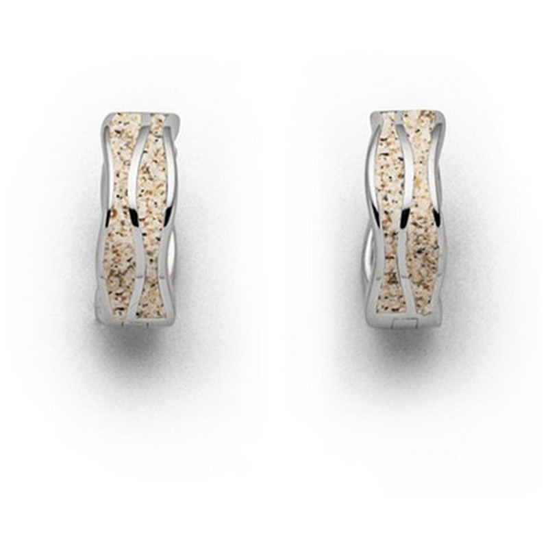 Die Creolen „Welle“ fangen die Schönheit und Bewegung des Meeres in einem eleganten Schmuckstück ein. Eine filigrane Silberwelle schmiegt sich harmonisch in eine Füllung aus natürlichem Strandsand – ein faszinierendes Zusammenspiel aus rauer Struktur
