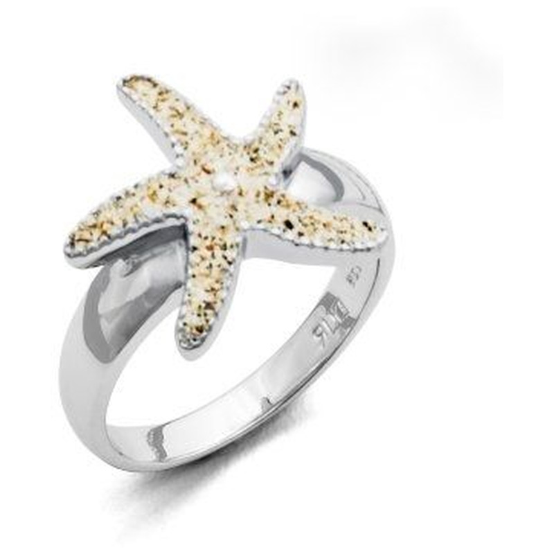 Ring „Seestern“ mit Strandsand gefüllt und gefasst in rhodiniertem 925er Sterling-Silber