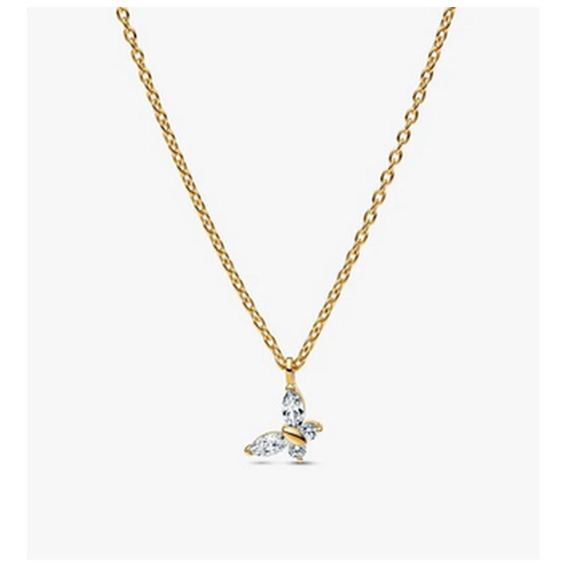 Breite deine Flügel aus und verwandele deinen Look mit dieser 14 Karat vergoldeten Halskette. Der Schmetterling ist mit runden klaren künstlichen Kristallen im Marquise-Schliff besetzt und hängt elegant an seiner Kette.